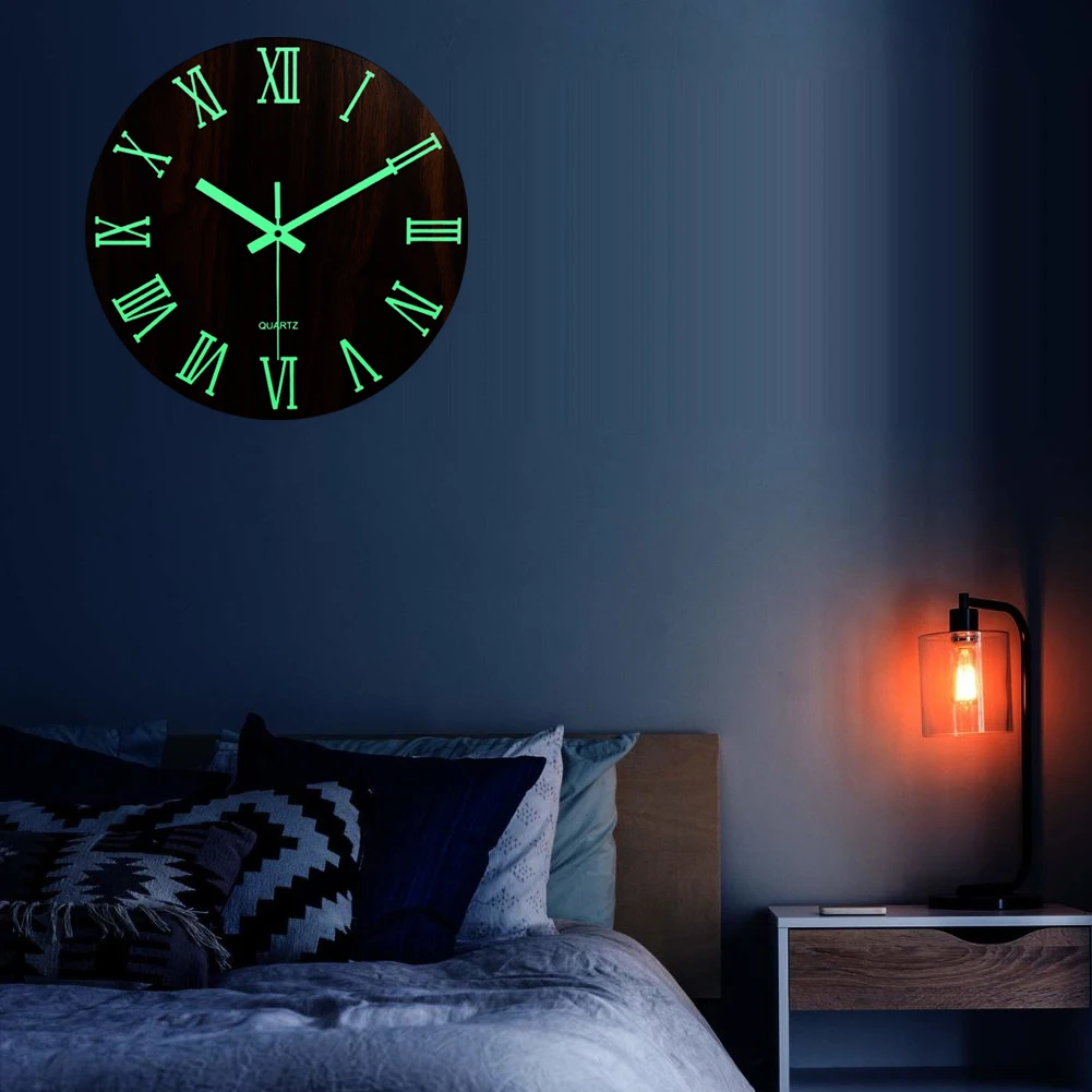 Designed for both day and night use, this wall clock comes with luminous numbers. During the day, simply place it under normal light or any light source to absorb energy. At night, the numbers and pointers will emit a soft glow, making it easy to read the time even in complete darkness. It features silent frequency sweep movement, perfect for the bedroom, library, office, conference room and so on.